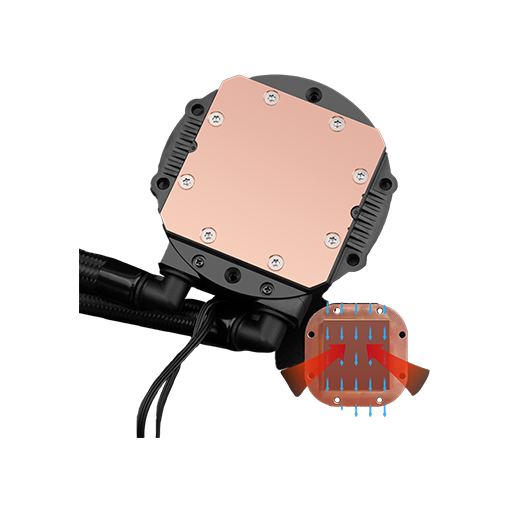 LCD Screen (temp,pumprpm,fan,rpm) Dual cavity; Pure copper pallet ARGB light effect FEP high polymer tube Closely ranked radiator